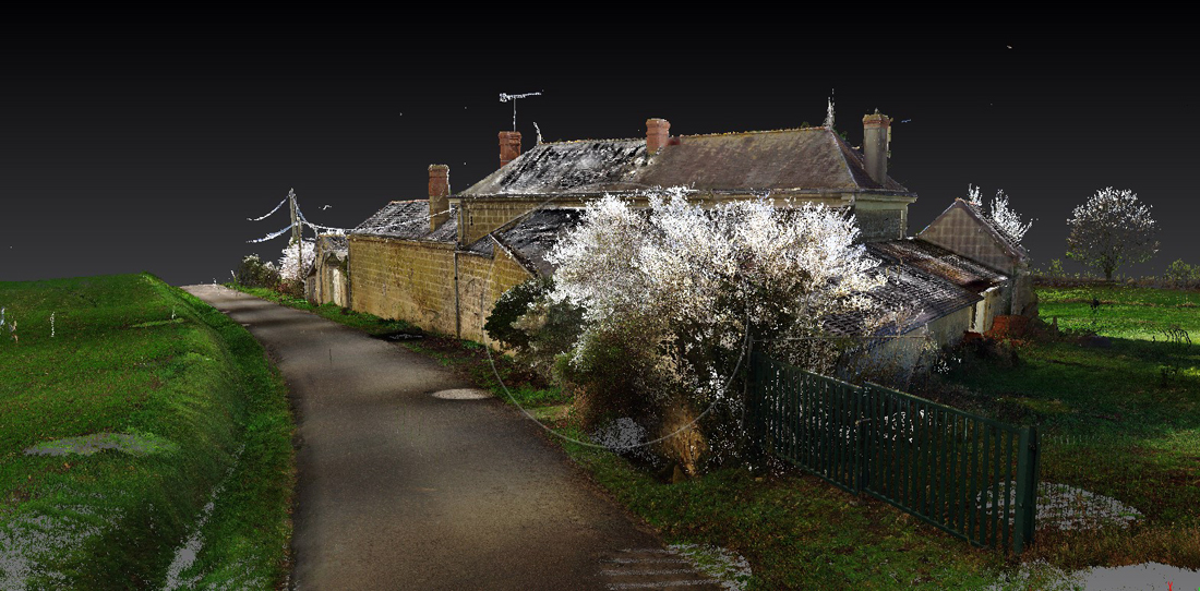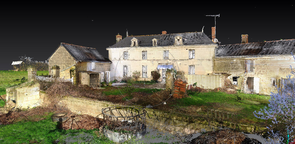 Nous avons investi dans un mât de 9 mètres de haut pour prendre des zones inaccessibles et parfaire un relevé. Avec cette base Karine peut imaginer les volumes à modifier à la demande